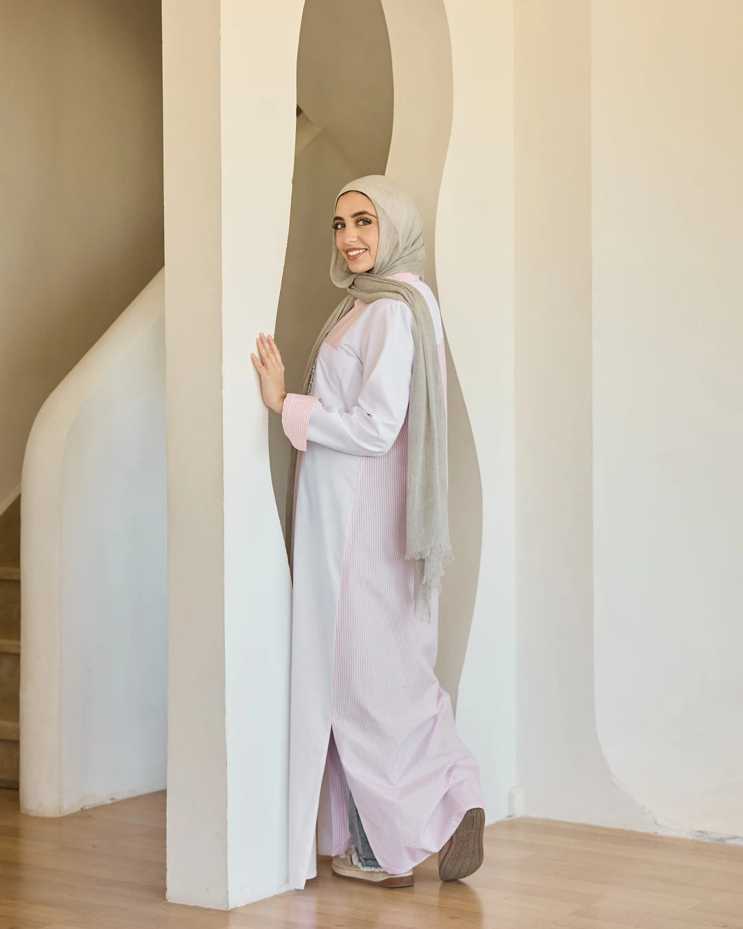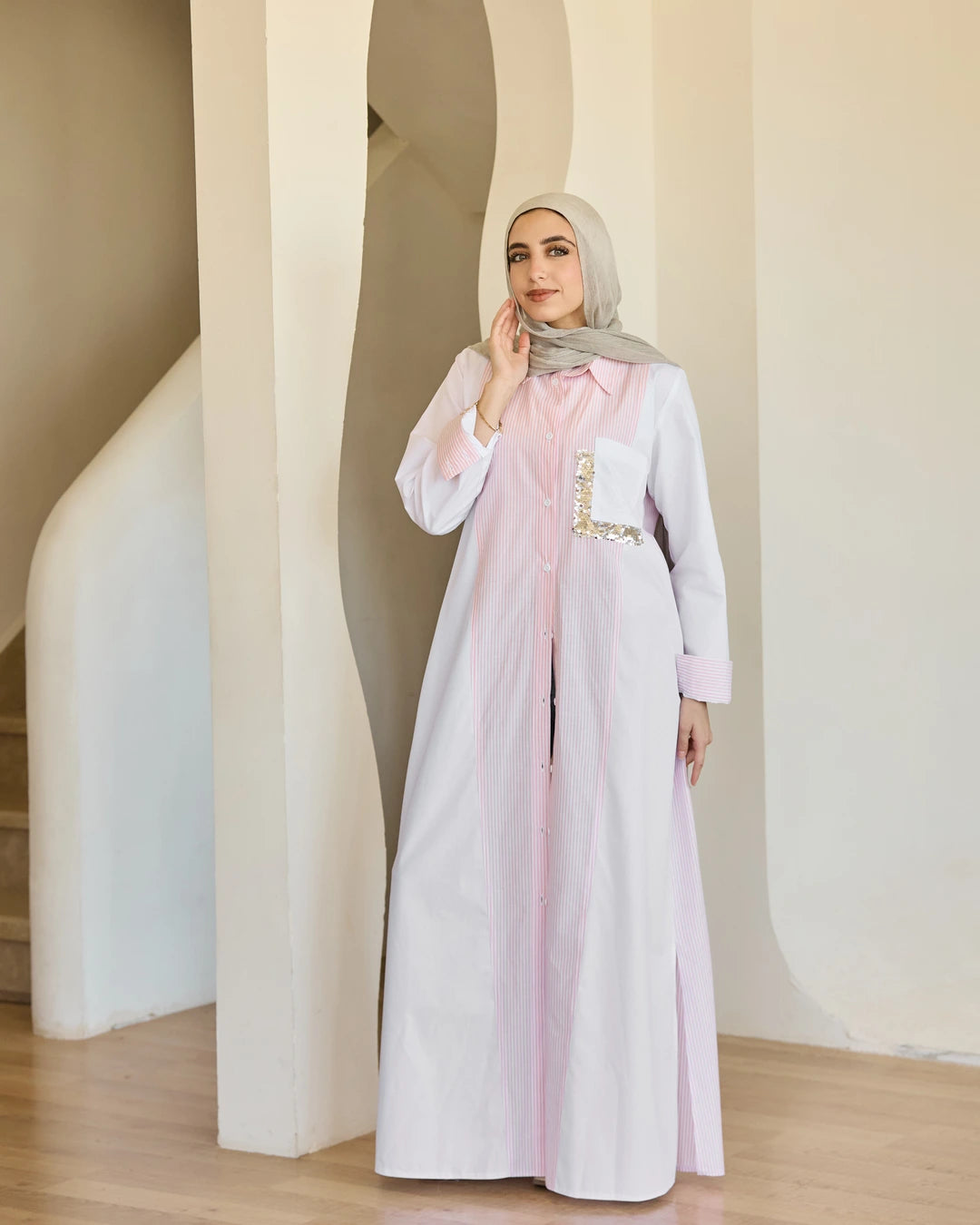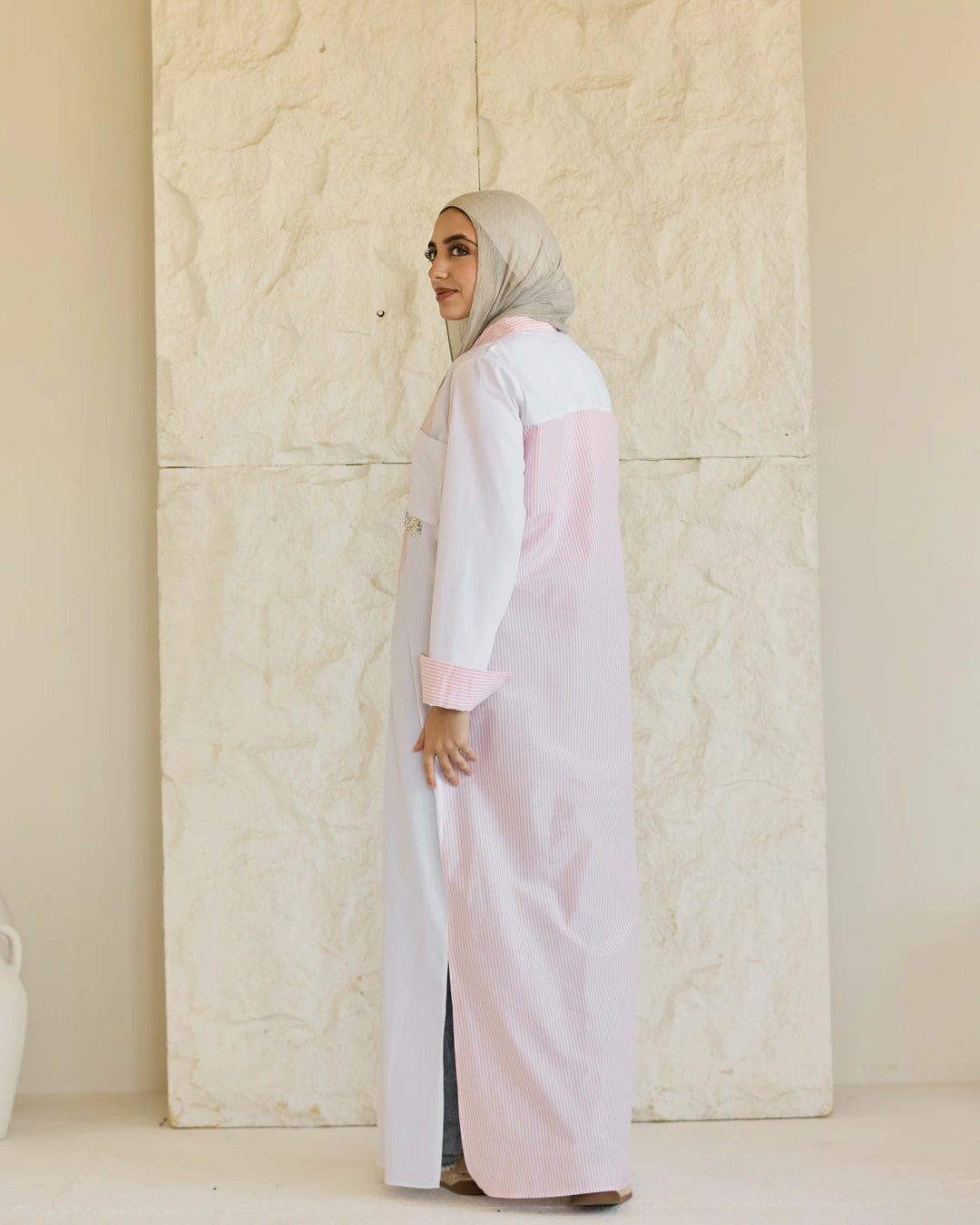 Plain & Striped Poplin Shirt Dress